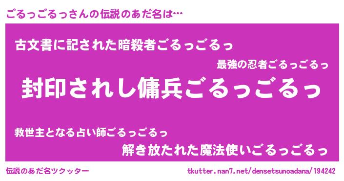 | 胡散臭い通販商品みたいなあだ名 | 『億万長者になれる水晶球…その名も「ごるっごるっ」』 |