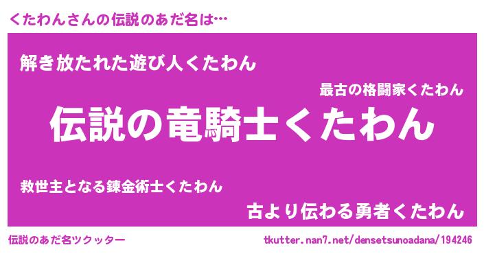 | ヒーロー風カッコイイあだ名 | 『スーパークタワン』『仮面クタダー』 |