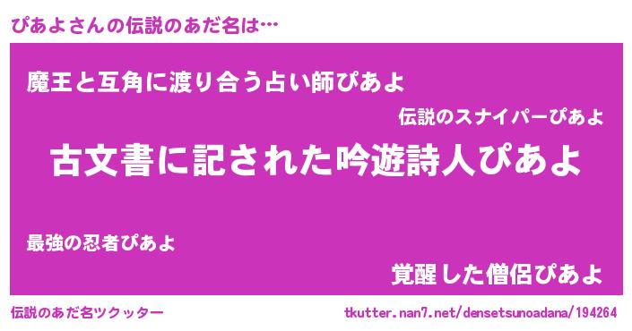 | ヒーロー風カッコイイあだ名 | 『ネオピアヨ』『天空の使者ぴあよ』 |