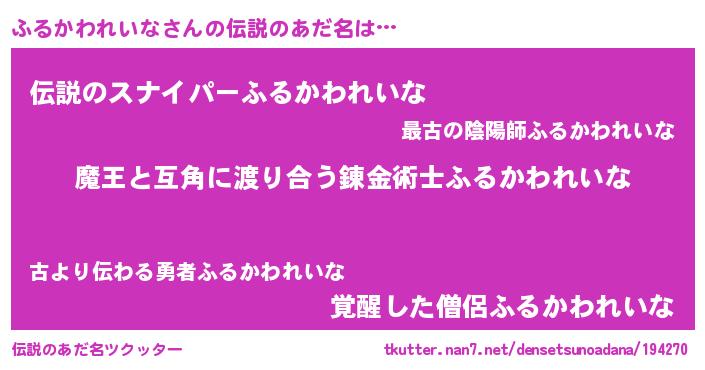 | 胡散臭い通販商品みたいなあだ名 | 『お金では代えられない隕石のかけら…その名も「ふるかわれいな」』 |
