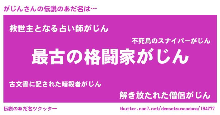 | 意味不明あだ名 | 『自称がじん』『がじんフォーエバー』 |