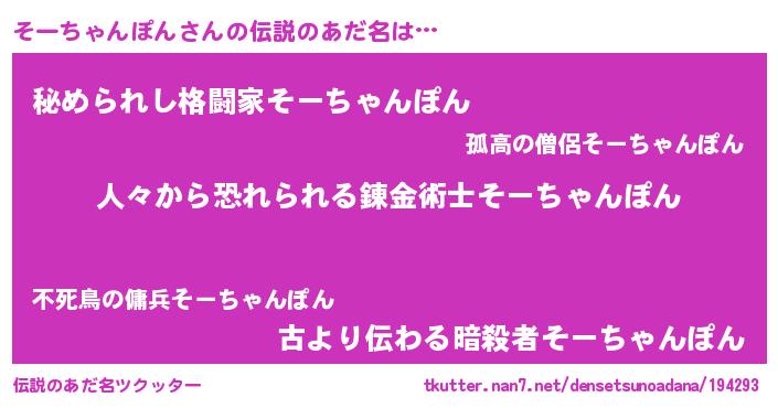| ヒーロー風カッコイイあだ名 | 『仮面ソーダー』『ネオソーチャンポン』 |