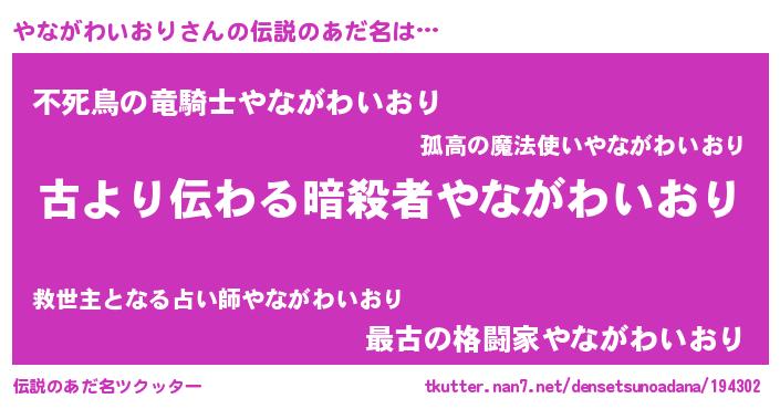 | 意味不明あだ名 | 『永久保存やながわいおり』 |