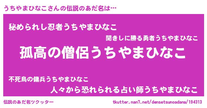 | 意味不明あだ名 | 『とにかく怪しいうちやまひなこ』 |