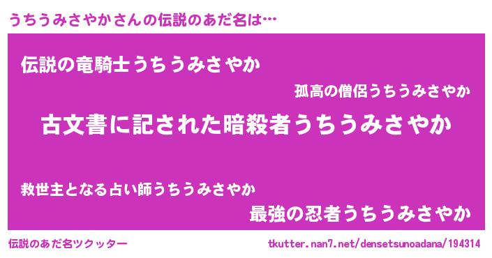 | 胡散臭い通販商品みたいなあだ名 | 『前代未聞の健康食品…その名も「うちうみさやか」』 |
