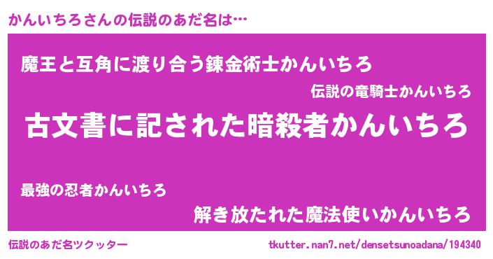| ヘコむあだ名 | 『かんいちろ(爆)』『かんお』 |