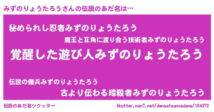 | 意味不明あだ名 | 『住所不定無職みずのりょうたろう(79歳)』 |