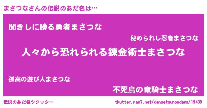 | 欧米人風あだ名 | 『ダニエルまさつな』『マイケルまさつな』 |