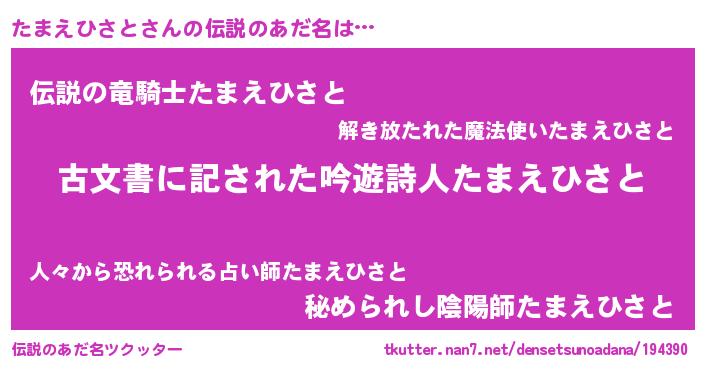 | ヘコむあだ名 | 『たまえひさと(笑)』『たまふぇ~』 |