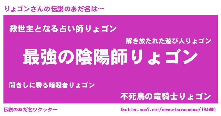 | ヒーロー風カッコイイあだ名 | 『ウルトラりょゴンマン』『仮面リョダー』 |