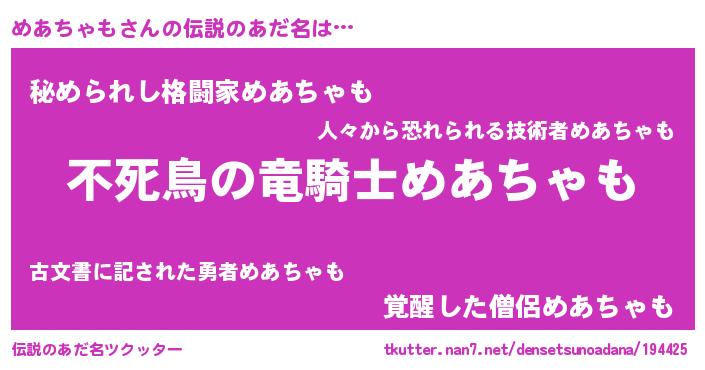 | 男性向けラノベタイトル風あだ名 | 『めあちゃもの憂鬱』 |