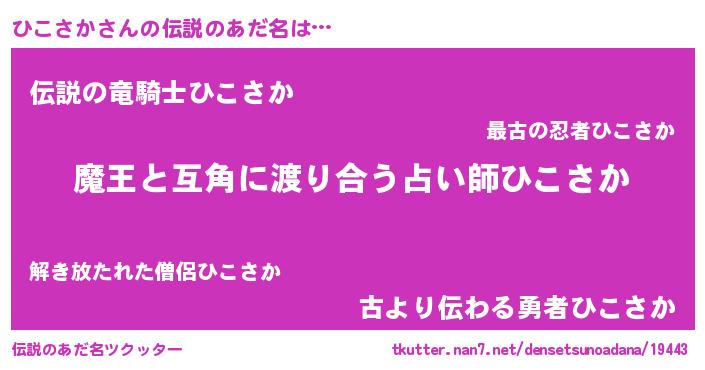 | 欧米人風あだ名 | 『アンジェラ・ひこさか』 |