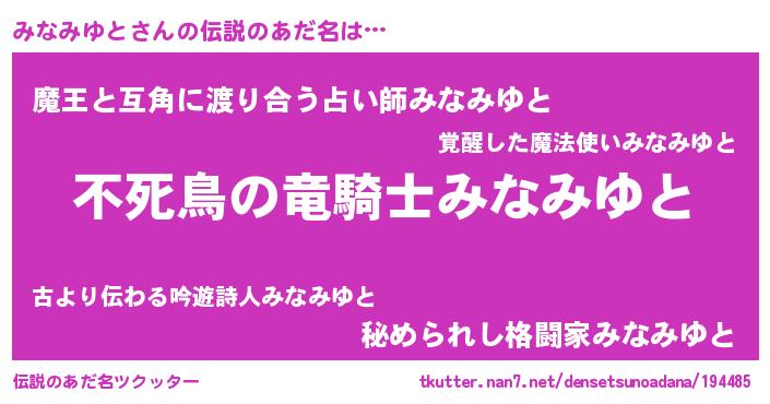 | ファンタジー風あだ名 | 『ミナフェル』『ユリミナヴァット』 |