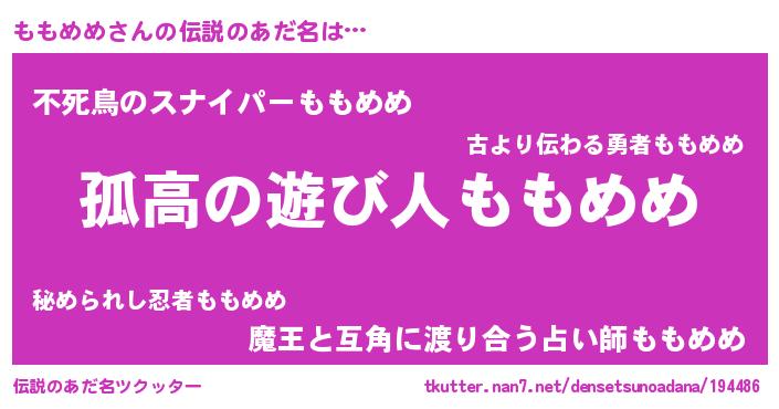 | ヒーロー風カッコイイあだ名 | 『魔戒騎士モモ』『スーパーモモメメ』 |