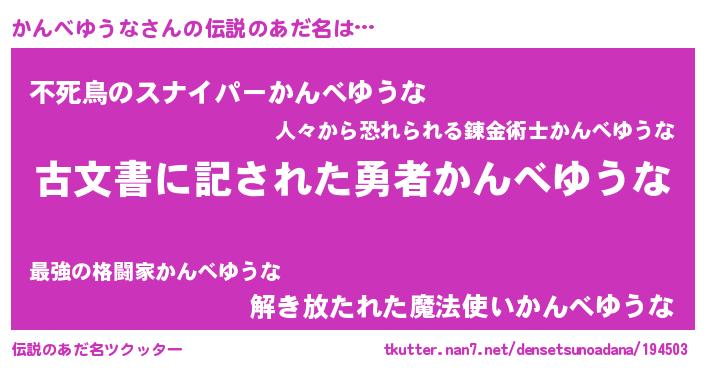 | 意味不明あだ名 | 『自称かんべゆうな』 |