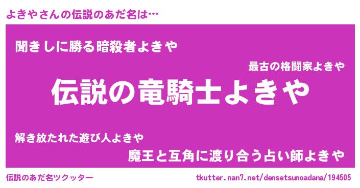 | 男性向けラノベタイトル風あだ名 | 『よきやの憂鬱』 |