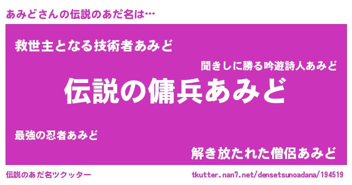 | 意味不明あだ名 | 『住所不定無職あみど(56歳)』 |