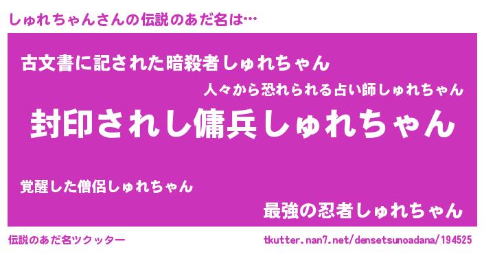 | ヘコむあだ名 | 『しゅにゅー』『しゅれちゃん(笑)』 |