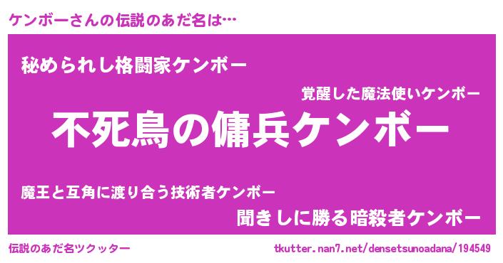 | 男性向けラノベタイトル風あだ名 | 『ケンボーの憂鬱』 |