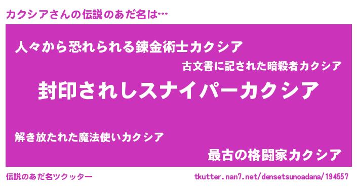| 意味不明あだ名 | 『住所不定無職カクシア(79歳)』 |