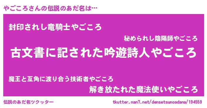 | ヒーロー風カッコイイあだ名 | 『ネオヤゴコロ』『スーパーヤゴコロ』 |