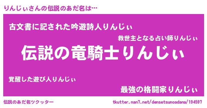 | 胡散臭い通販商品みたいなあだ名 | 『必ず成功するブレスレット…その名も「りんじぃ」』 |
