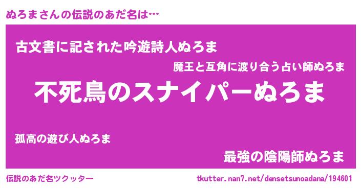 | 胡散臭い通販商品みたいなあだ名 | 『モテモテ間違いなし霊験あらたかなお札…その名も「ぬろま」』 |