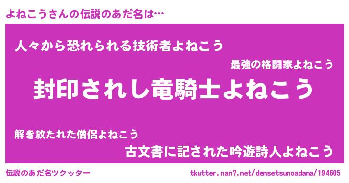 | 意味不明あだ名 | 『ペロリンよねこう』『自称よねこう』 |