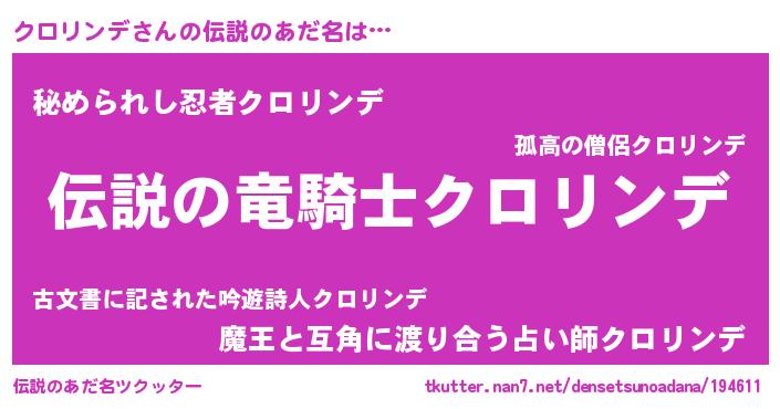 | 胡散臭い通販商品みたいなあだ名 | 『必ず成功するブレスレット…その名も「クロリンデ」』 |