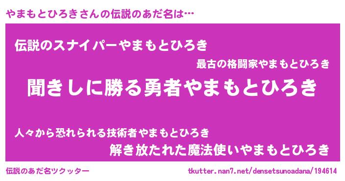 | ヒーロー風カッコイイあだ名 | 『ネオヤマモトヒロキ』『黄金騎士ヤマ』 |