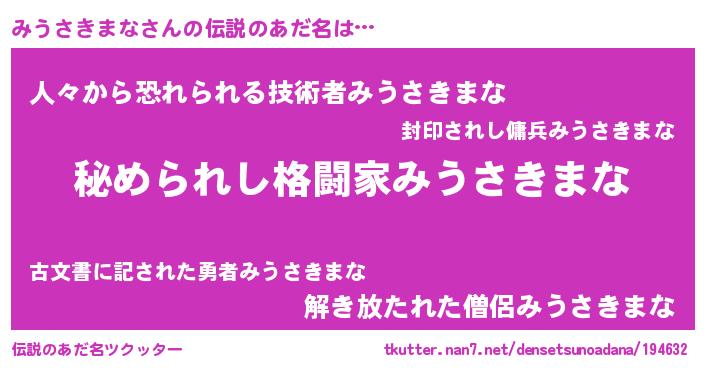 | ポケモン風あだ名 | 『ミウキング』『ミウサダネ』 |