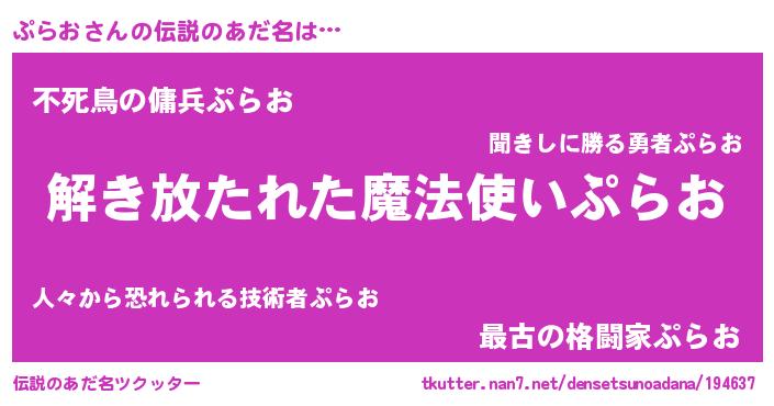 | 意味不明あだ名 | 『とにかく怪しいぷらお』『自称ぷらお』 |