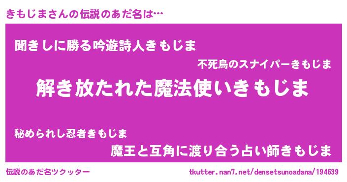 | ヒーロー風カッコイイあだ名 | 『幻影騎士キモ』『ネオキモジマ』 |