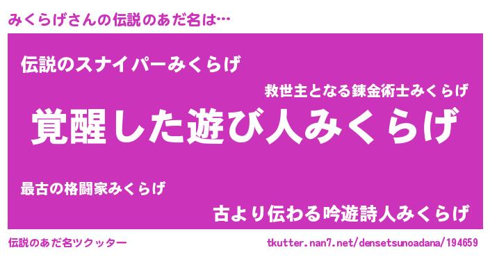 | 意味不明あだ名 | 『住所不定無職みくらげ(89歳)』 |