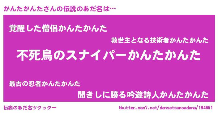 | 女子向けラノベタイトル風あだ名 | 『かんたかんた姫と円卓の騎士』 |