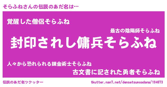 | 胡散臭い通販商品みたいなあだ名 | 『億万長者になれる水晶球…その名も「そらふね」』 |