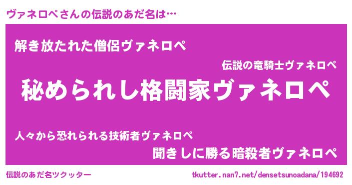 | 欧米人風あだ名 | 『ヴァネロペクリステル』 |