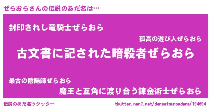 | ヘコむあだ名 | 『ぜらおら(笑)』『ぜらふぇ~』 |