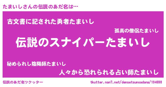 ヒーロー風カッコイイあだ名 | 『ウルトラ戦士タマイシ』『仮面タマダー』 |