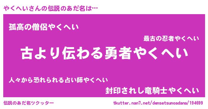 | 意味不明あだ名 | 『永久保存やくへい』『自称やくへい』 |