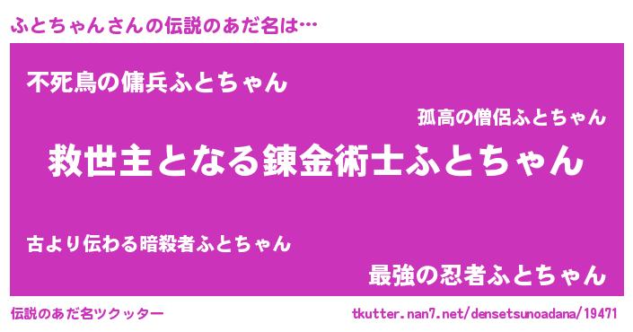 | 男性向けラノベタイトル風あだ名 | 『ノーゲーム・ノーフトチャン』 |