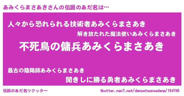 | ヒーロー風カッコイイあだ名 | 『スーパーアミクラマサアキ』 |