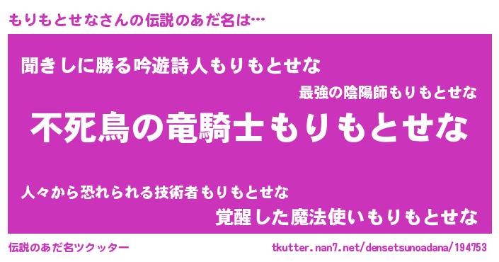 | 男性向けラノベタイトル風あだ名 | 『モリモトセナアートオンライン』 |