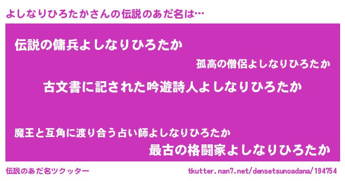 | 肩書あだ名 | 『よしなりひろたか船長』 |