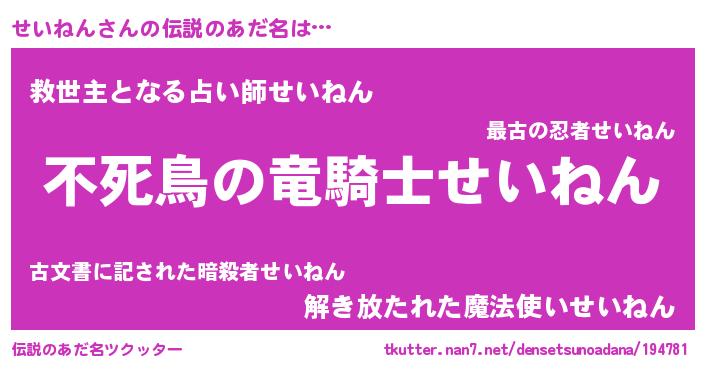 | 恥ずかしいあだ名 | 『プリティーせいねん』『セイリンリン』 |