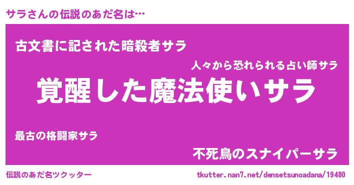 | ヒーロー風カッコイイあだ名 | 『仮面サラダー』『暗黒騎士サラ』 |