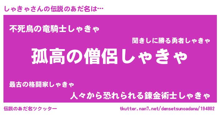 | 意味不明あだ名 | 『とにかく怪しいしゃきゃ』 |
