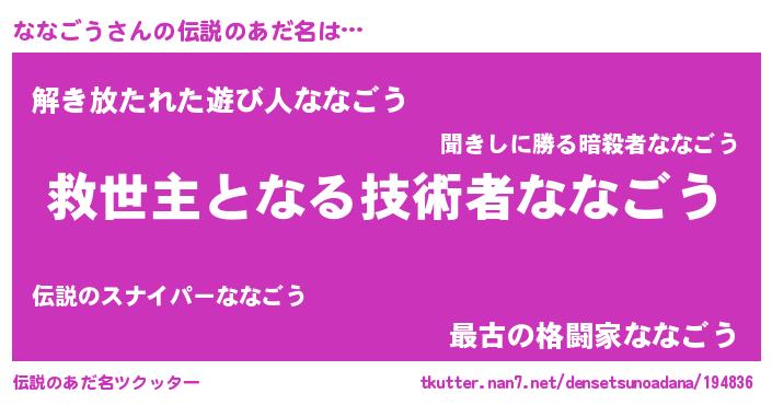 | 欧米人風あだ名 | 『ダニエルななごう』『ウサインななごう』 |