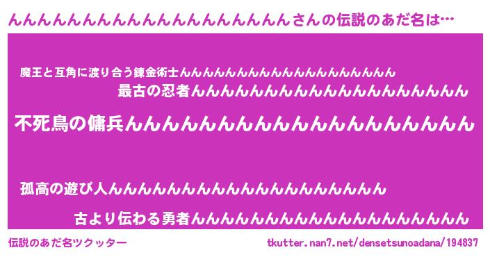 | 男性向けラノベタイトル風あだ名 | 『この素晴らしい世界にんんんんんんんんんんんんんんんんんんんを!』 |