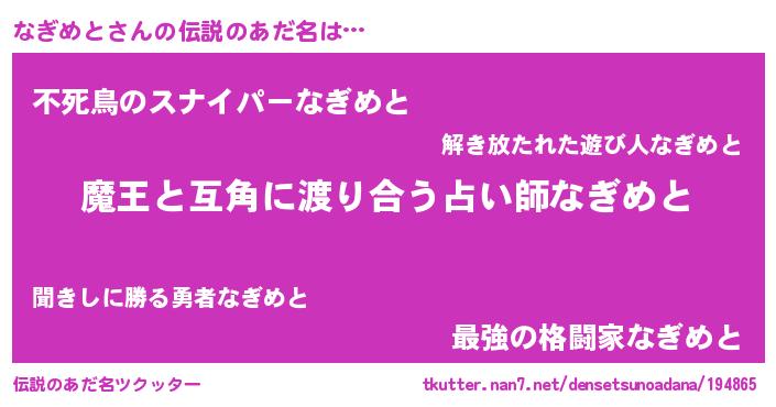 | ヘコむあだ名 | 『なぎにゅー』『豆乳』『なぎっちょ』 |